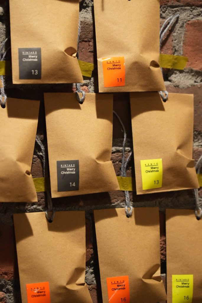ということで急きょ完成した、即席アドベントカレンダー。仕事帰りに小さなお菓子を買って、あとは家にあるもので。